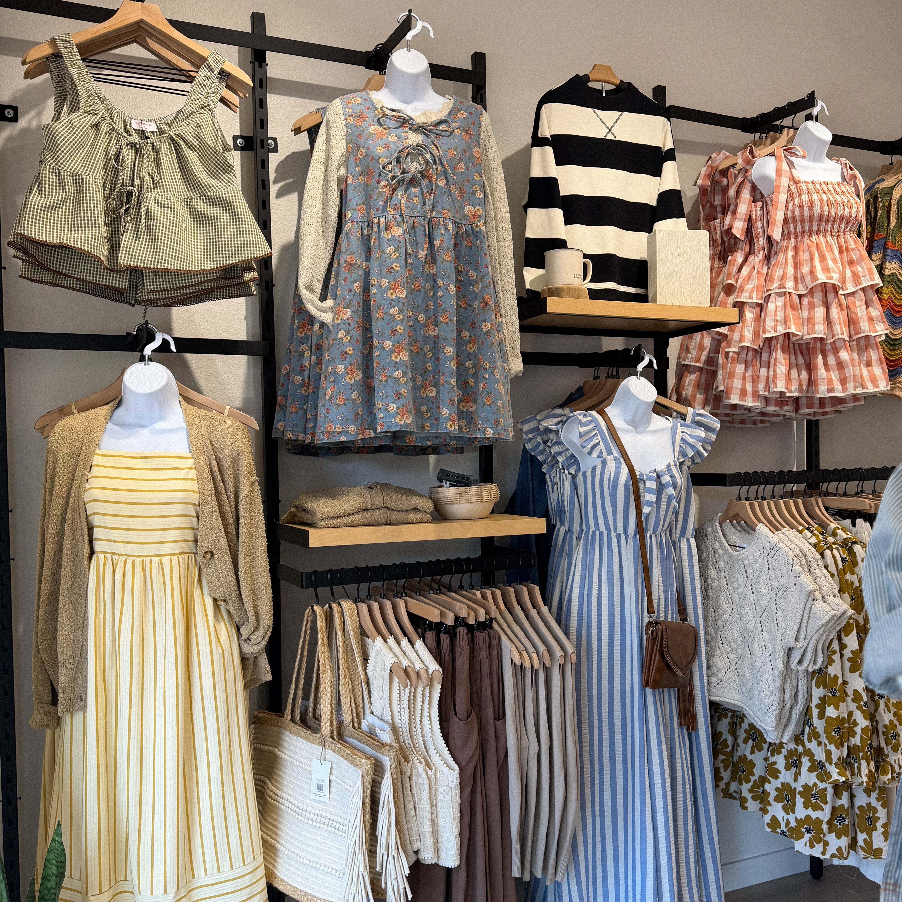 A few of our new spring arrivals are here! We have everything from dresses and breezy tops, to fuzzy cardigans and a few sweaters!