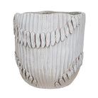 9-1/4"L x 8-3/4"W x 8-3/4"H Handmade Stoneware Pleated Planter w/ Pattern, Cream Color (Holds 8" Pot)