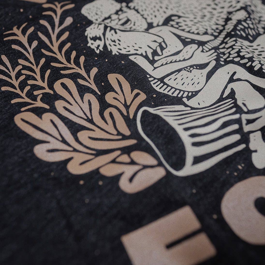 Printed on black heather super-soft blended shirts (50/25/25 polyester/airlume combed and ringspun cotton/rayon).