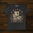Step into the heart of the wilderness with our "Friend of the Forest" t-shirt—a tribute to those who feel at home among the pines and the wildlife. This shirt is all about the laid-back joys of forest life. With a mug in paw and a grin on his face, this bear isn't just any forest dweller—he's your new best friend in the great outdoors. The rustic artwork, with its earthy tones and whimsical charm, makes it clear: you're not just a visitor in the forest; you're a friend.