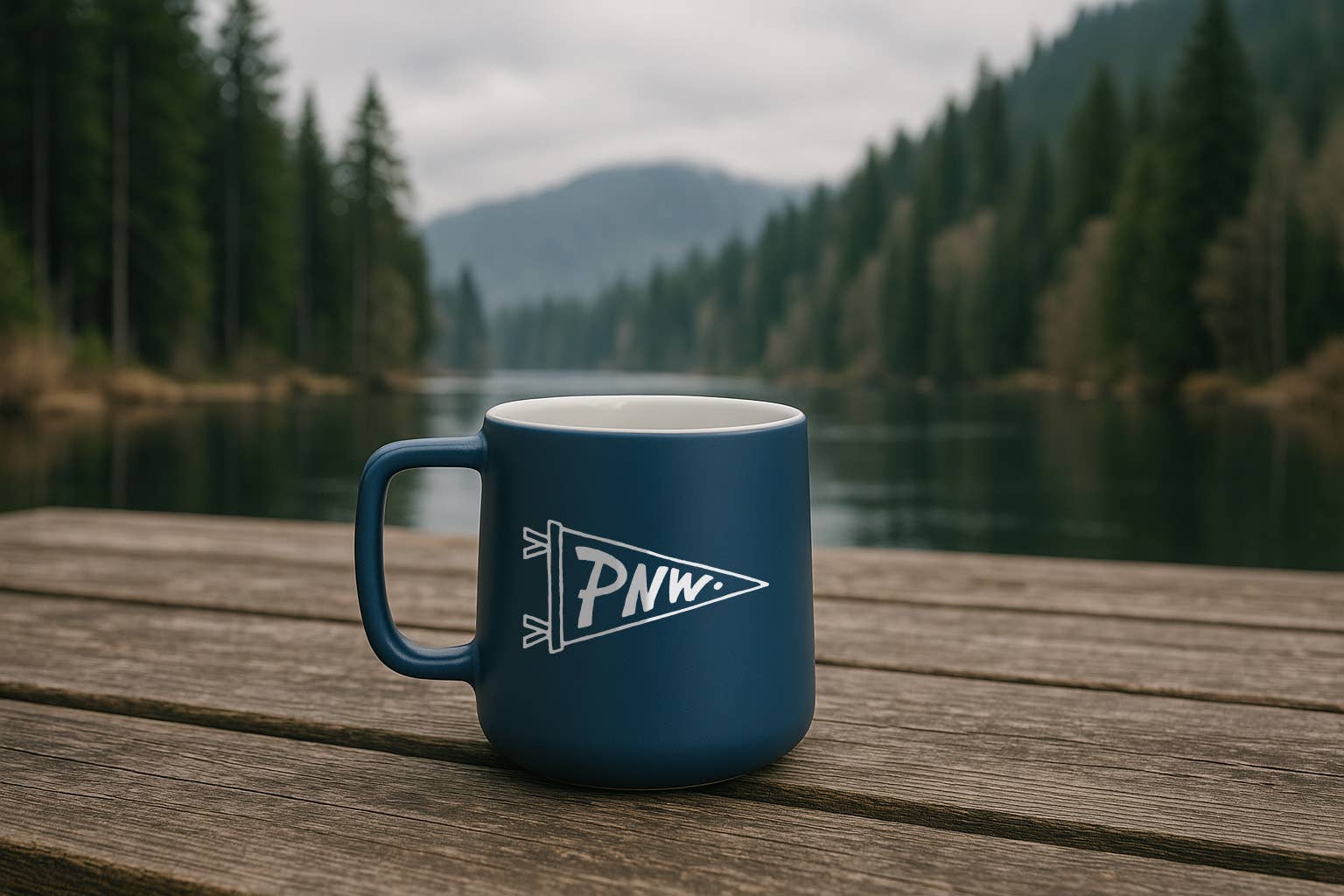 Celebrate Pacific Northwest pride in a small but mighty way with the PNW Pennant Mug. This 12oz steel blue ceramic mug features a hand-drawn pennant design printed in white ink, perfect for espresso shots, small sips, or display. Durable, compact, and full of regional charm.