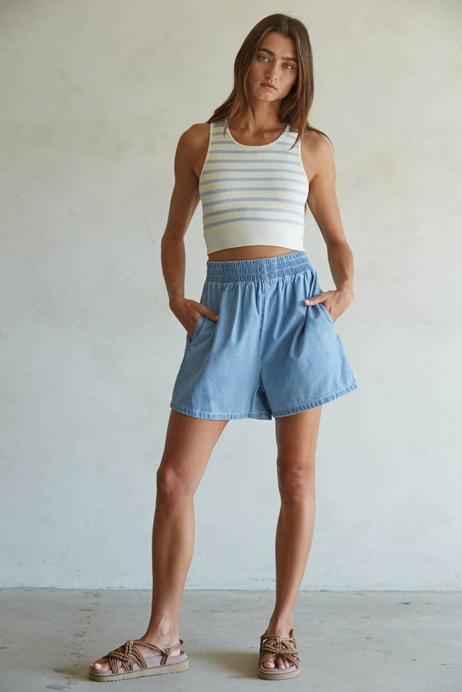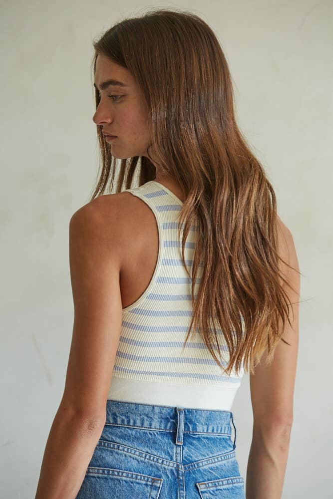 Knit Seamless Ribbed Striped Scoop Neck Racerback Brami