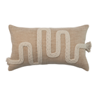 24"L x 14"H Cotton & Jute Lumbar Pillow w/ Embroidery & Fringe, Tan Color