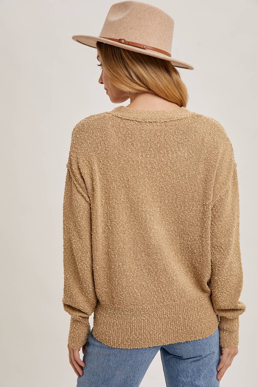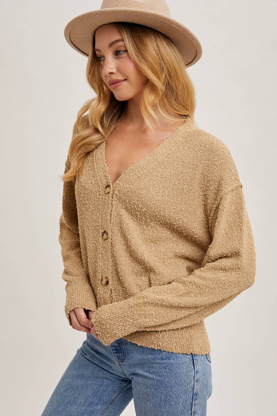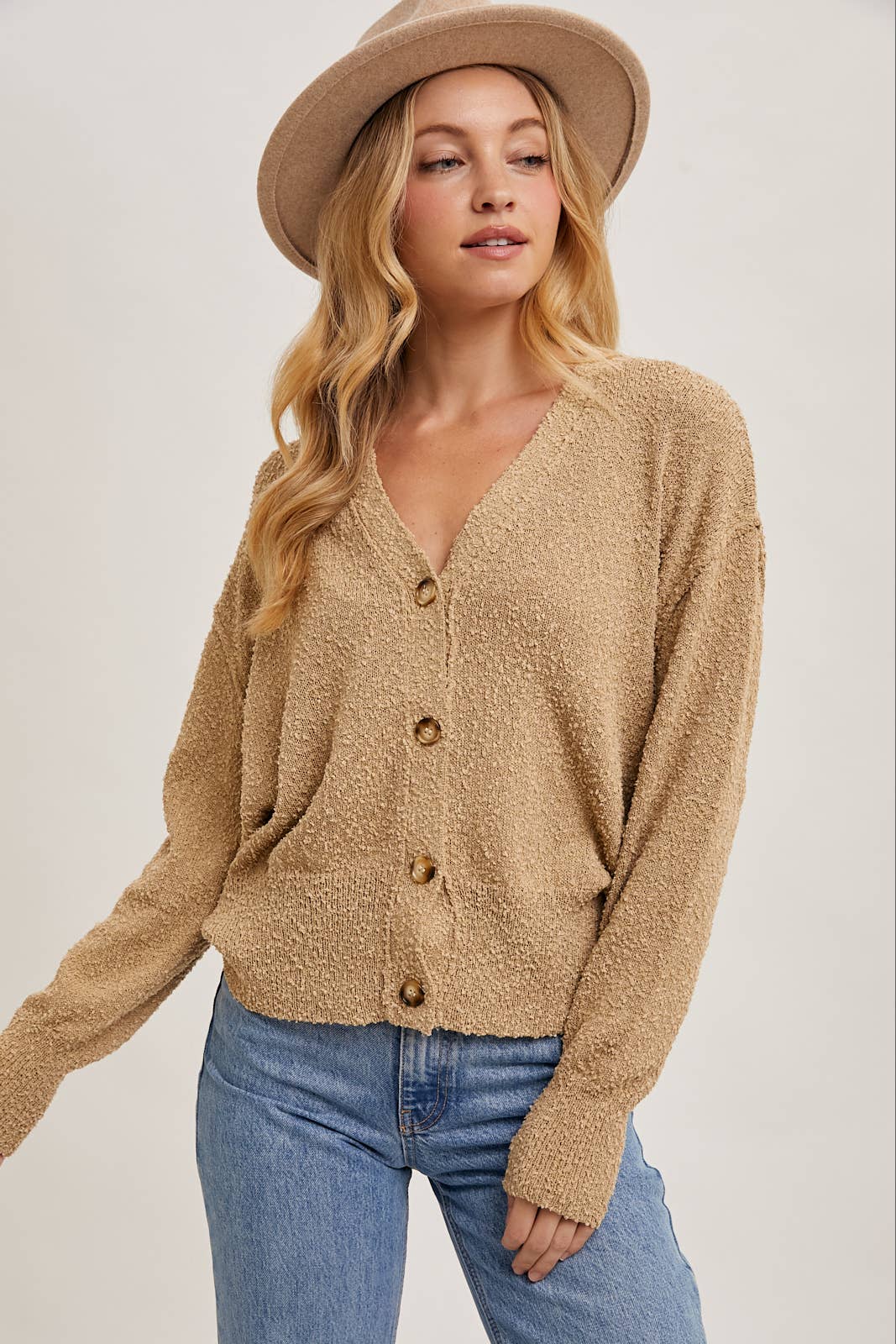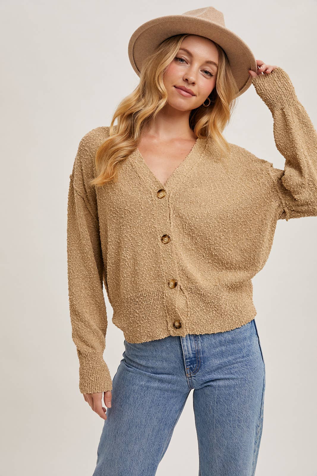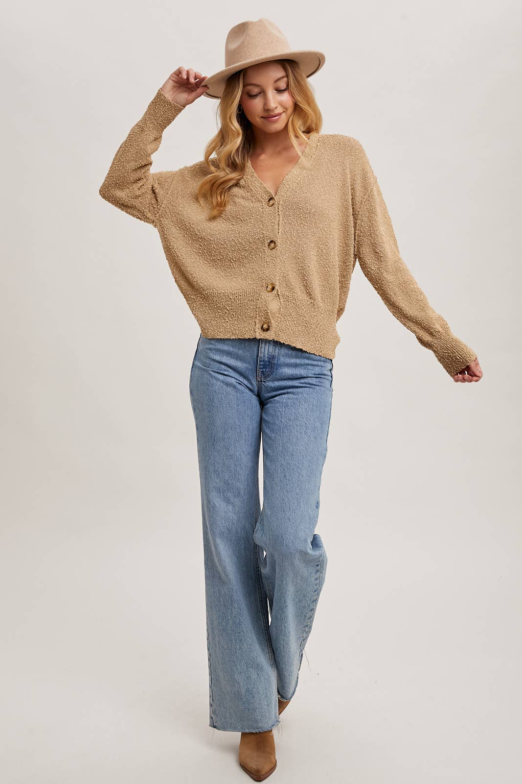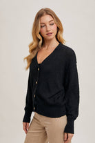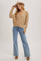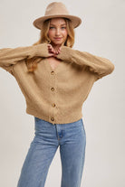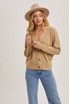 The button-down knit sweater cardigan is a timeless wardrobe essential that combines coziness with versatility. This cardigan features a classic button-down front, allowing for easy layering over your favorite tops or dresses. The soft knit fabric provides warmth and comfort, making it an ideal choice for cooler days. With its relaxed fit and long sleeves, this cardigan offers a cozy yet stylish look that can be dressed up or down. Whether you're pairing it with jeans for a casual outing or draping it over a dress for a more polished appearance, this knit sweater cardigan is a go-to piece for any season.