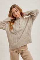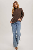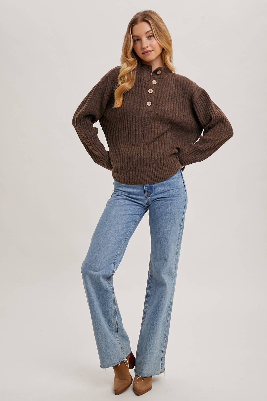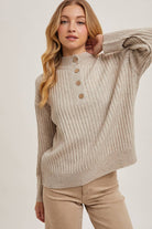 A Henley neck button-front knit sweater pullover combines classic design with casual comfort. This pullover features a Henley neckline, distinguished by a short button placket that extends from the neck down to the chest, adding a subtle touch of detail and the option to adjust the neckline to your preference. The knit material offers warmth and a cozy feel, making it perfect for cooler weather. The sweater's pullover style ensures easy wear, and its relaxed fit makes it versatile for layering over a t-shirt or under a jacket. This Henley neck sweater is a timeless piece that can be paired with jeans for a laid-back look or dressed up with slacks for a more polished outfit.