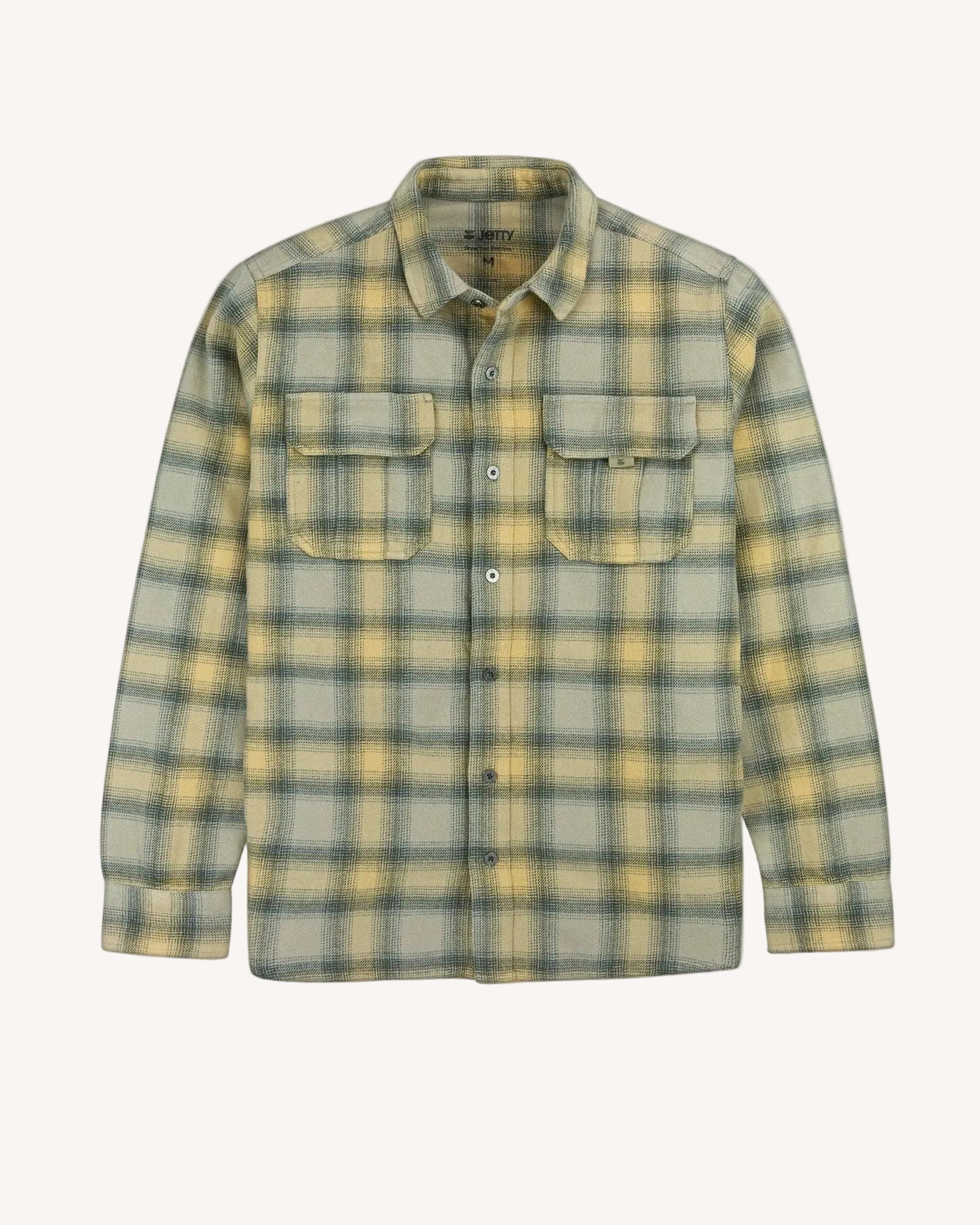 Our Arbor Flannel in Tan is a signature piece from Jetty. Crafted with 100% cotton, it provides the ideal combination of comfort and durability. This men's button-down shirt is perfect for those who value both style and sustainability. Jetty, a B-Corp Certified company, was born out of a shared love for surf, fishing, art, travel, and music. As you wear this flannel, you're not just choosing a piece of clothing, but also supporting a brand that is dedicated to reducing waste, creating premium products, and supporting coastal communities.
