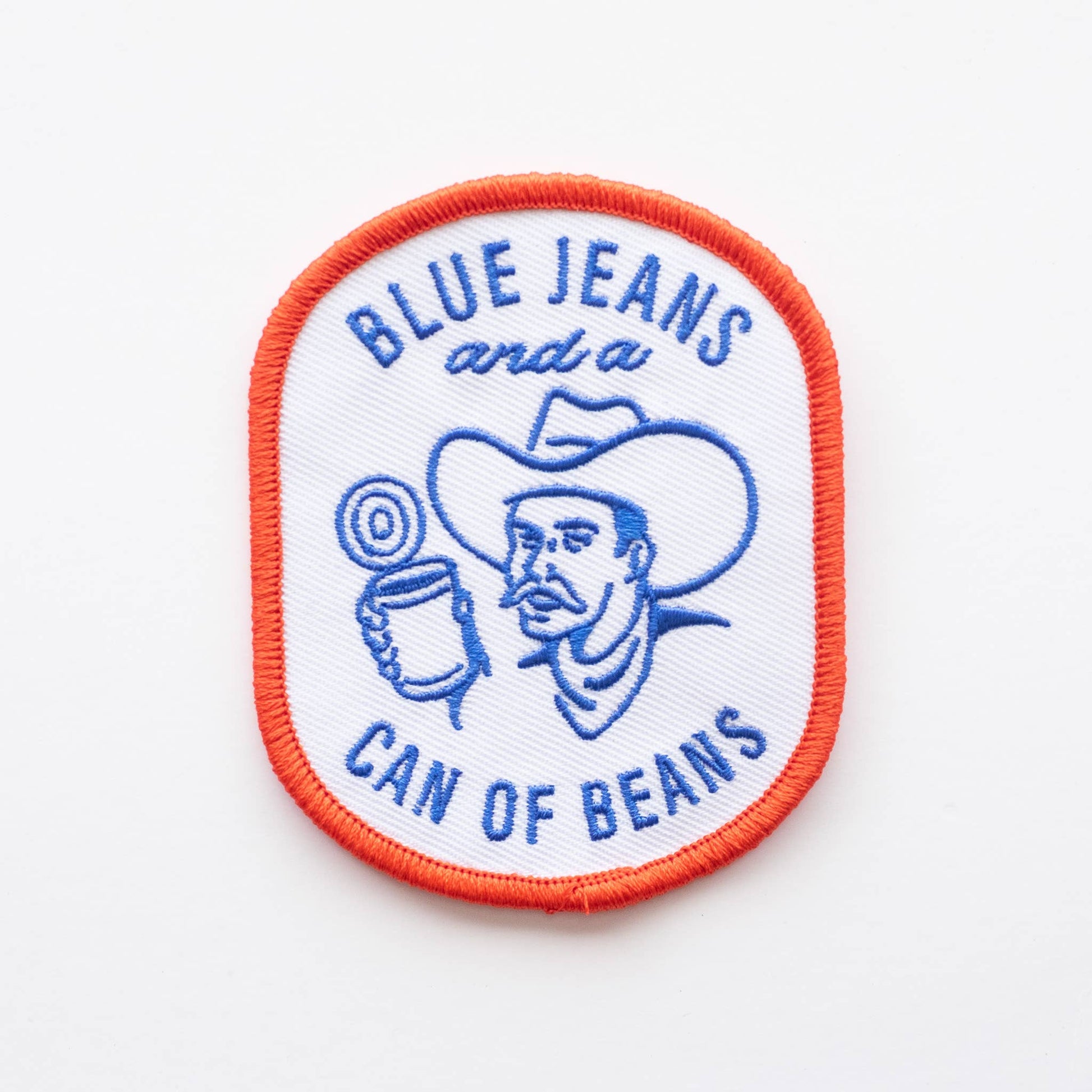 Add a touch of western flair to your wardrobe with our "Blue Jeans and a Can of Beans" embroidered patch. Standing at 3 inches tall, this bold design features classic cowboy colors of blue, red, and white, capturing the spirit of rugged adventures and timeless style. Perfect for denim jackets, backpacks, or hats, this patch is a fun and easy way to showcase your love for the cowboy lifestyle.