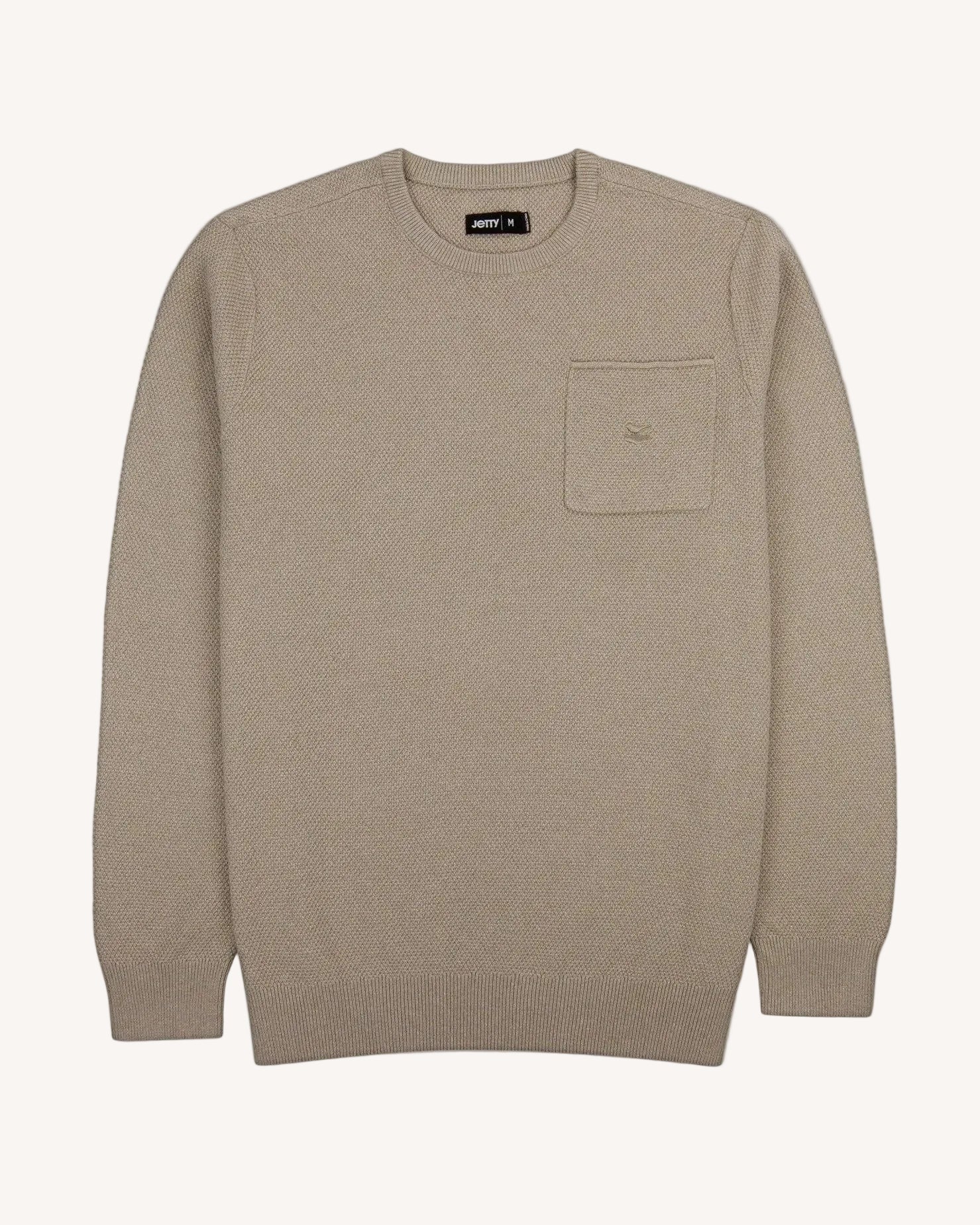Experience the comforting warmth of our Brine Sweater in Tan. Made from 100% cotton, this men's sweatshirt guarantees a soft, cozy feel against your skin. Jetty, a brand born from a shared love of surf, fishing, art, travel, and music, is committed to quality and sustainability. This piece reflects our dedication to creating durable apparel that encourages outdoor adventures, regardless of the weather. By choosing Jetty, you're not just getting a premium product, you're also supporting our mission to protect our oceans and waterways through the Jetty Rock Foundation.