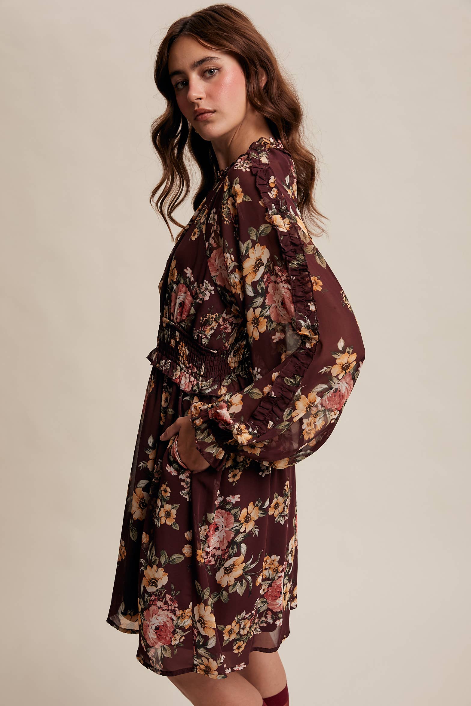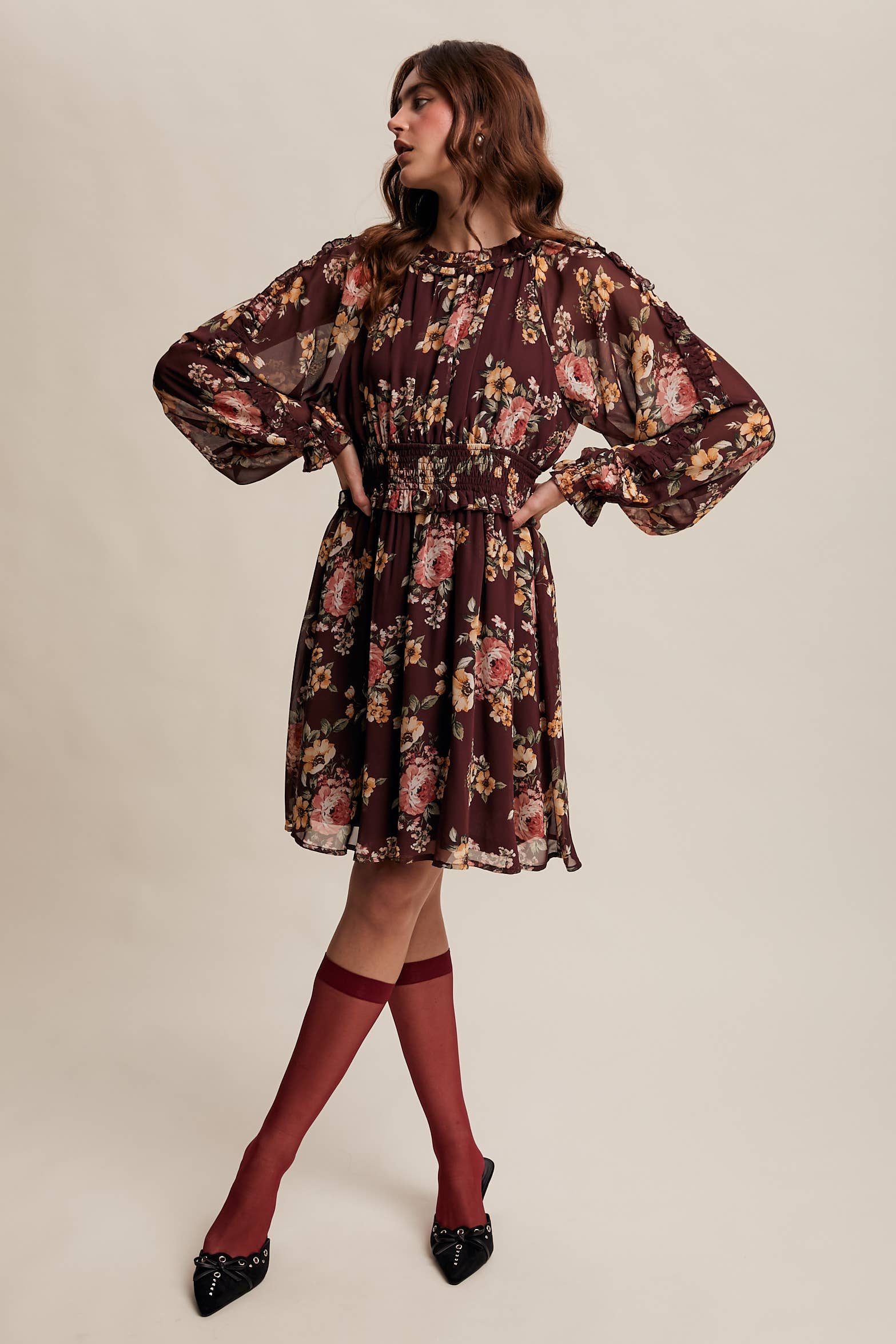 A dreamy boho-inspired piece that pairs elegance with ease, perfect for fall outings and floral lovers alike.