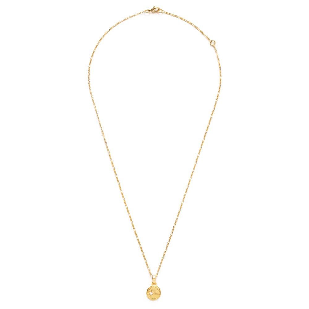 The North Star or Polaris can be your point of navigation in the night sky. This single star on the hand carved pendant is set with a Czech crystal. It is made of gold plated brass. The chain is 20" long with a ring at 18" so it can be adjusted to various lengths. The chain is also coated to resist tarnish and create a hypoallergenic surface.